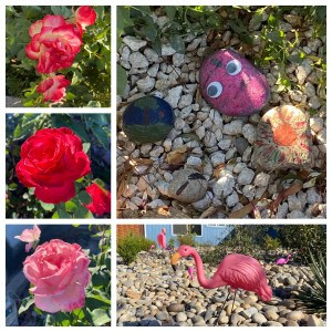 We had a lovely time and captured photos of beautiful roses and fun painted rocks in our neighborhood.