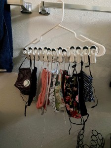 The actual clothes dryer wasn’t a great option because they came out in tightly wrinkled balls. For most of the pandemic, it’s been hot enough to lay the masks out on a flat surface and they dried overnight. Now that it is cold here in the Bay Area, that doesn’t work.