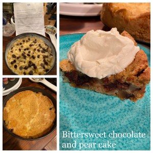 I proceeded to make a favorite of ours that we first enjoyed in Venice. It’s a bittersweet chocolate and pear cake (recipe from smitten kitchen). I added a few ginger chips just to add a little bite to it. But it was delicious! And ever so reminiscent of our special trip.
