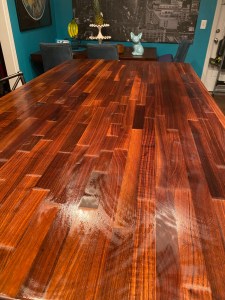 It’s been a while since we’ve seen our kitchen counter entirely, but today I made it happen! After clearing off everything that’s piled up, I oiled our lovely wood island, which we’ve fondly nicknamed Staten. It’s amazing what a lovely feeling it is to see such a large empty space.