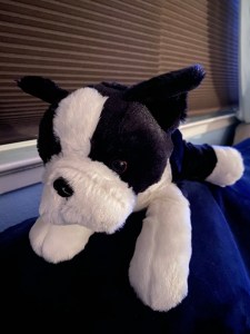 We’ve been searching for a year for another little Boston Terrier rescue to add to our family, but sadly haven’t found our match yet. In the meantime, we got this adorable Boston puppy stuffed animal, which is soft and comforting. She arrived today and is yet to be named. Suggestions welcome!