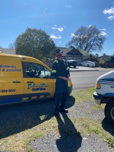 It was a two-day process as AAA Roadside Assistance tried to jumpstart it last night, but sadly it wasn’t enough to revive the old battery. Thankfully, we got the same awesome emergency assistance guy both days. Not only did Don replace our battery but he was super kind and helpful. Thanks to his tips, I was able to figure out the next steps to make our van driveable.