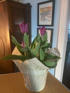 Today’s #OneGoodThing with Mama was discovering these gorgeous purple tulips, which appeared in a dormant and discarded pot that was tucked away and forgotten in our backyard! What was your #OneGoodThing today? Please share in the comments! And remember, kindness is everything!