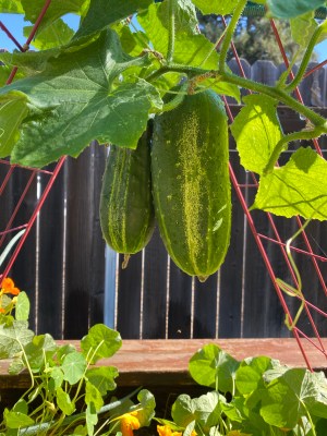 Today’s #OneGoodThing with Mama was discovering these gorgeous cucumbers hanging from the A-frame trellis in our garden! What was your #OneGoodThing today? Please share in the comments! And remember, kindness is everything!