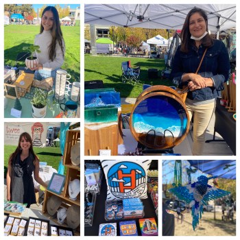 Clockwise L to R: Blooming Coast Plant & Succulent Arrangements, Saadia.Art Resin, Halton Studios beaded hummingbird, Lionel’s Place Choose Weird shop, Twee Accessories