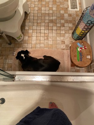 My sweet boy Benny follows me everywhere like a shadow. He was excellent company and a great comfort while I showered tonight.