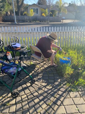 Before we could plant our forgotten spring bulbs in our front yard, we had to get the area ready for planting. The weather was lovely so Mama and I ventured to pull weeds together. I closed the gate and the dogs happily ran around while we gardened.