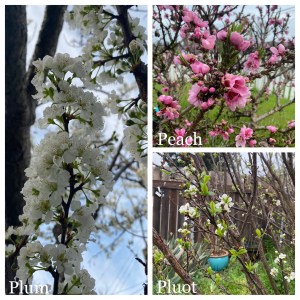 Our plum, peach, and pluot trees are all flowering and they’re so beautiful!