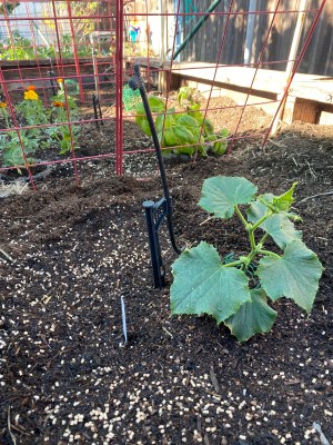 Today I planted our cucumber, Italian basil, and marigolds in our big garden box. Zucchini and Thai basil will eventually join the party, but this was a good start. I even covered the soil with straw to help with water retention.