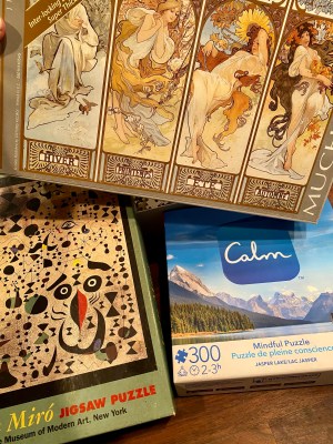 Some local friends who read about Mama’s rekindled love of puzzles stopped by with a few puzzles to share with us today. We are so touched and are especially looking forward to the “Calm” outdoor scene puzzle as the pieces are a great size!