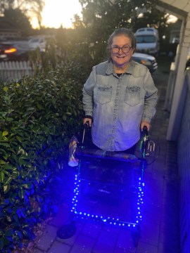 Since it gets dark so much earlier these days, I wanted a fun way to add more light to Mama’s rollator walker for her neighborhood walks.