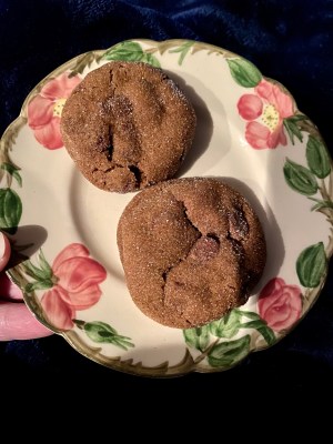 Thankfully, we had balls of homemade ginger chocolate cookie dough already made so all I had to do was bake it! Mama and I enjoyed these yummy treats with cold milk. So good!