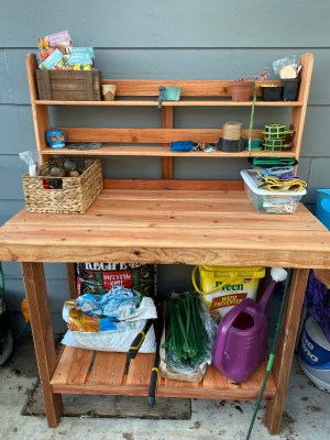 Isn’t it wonderful? Now I won’t strain my back to pot everything while crouched down on the ground! Most of our garden is in pots due to a gopher problem. So this will be perfect!