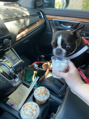 On my way home from yet another Vitamin C infusion at the hospital, I stopped for Caramel Frappes to bring home. The drive-thru clerk offered a whipped cream cup for Benny (often referred to as a pupuchino). I pulled over so he could enjoy and wow, was he excited!