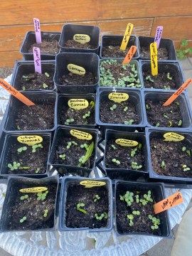 Tons of tiny sprouts have appeared in the wee pots where we planted this season’s seeds recently. It’s mostly the zinnias at this point, but we’re enjoying watching them grow.