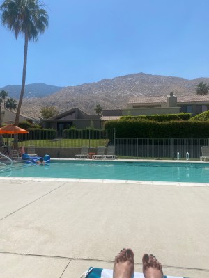 Alyssa and I spent most of today poolside, enjoying the desert view and cool dips in the water. It was a very pleasant 90 degrees and we had a nice, relaxing day.
