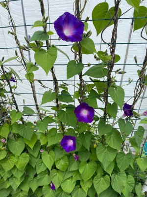Our Morning Glory plantings are doing very well this year, forming this lovely little wall of heart-shaped leaves. The flowers are gorgeous too, but these leaves get me every time!
