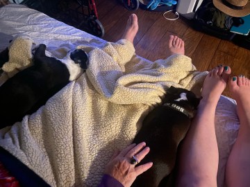 Mama and the dogs and I had a lovely cuddle on our living room couch-turned-bed this evening while we watched our comfort show. It was a nice evening of connectedness.