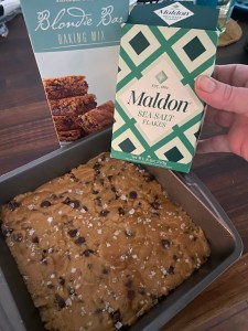 Today’s #OneGoodThing with Mama is making Trader Joe’s blondie bars (brownie-like cookies) with sea salt flakes on top! It’s a delicious combination! What was your #OneGoodThing today? Please share in the comments! And remember, kindness is everything!