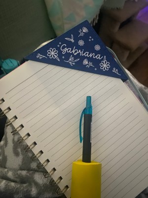 This pretty blue leather bookmark with my name on it was a Chanukah gift from my bestie Alyssa. It perfectly holds my place in my Morning Pages journal and I love it!