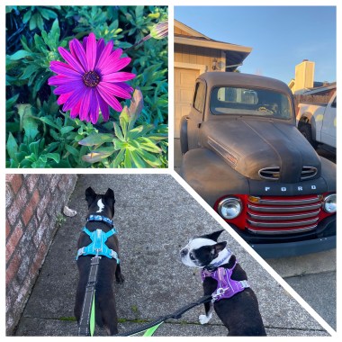 After a bit of cleaning and then resting, I gathered the energy to take Benny and Paisley on a short neighborhood walk. We saw the truck Mama loves that we named Fred and this beautiful flower. I was feeling so good about being out taking a walk on January 1.