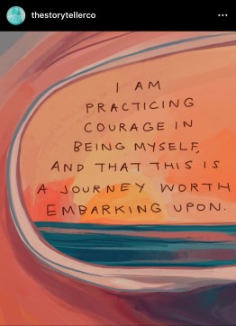 Today’s #OneGoodThing is this beautiful art and meaningful message: I am practicing courage in being myself, and that this is a journey worth embarking upon. Art by @thestorytellerco on Instagram. What was your #OneGoodThing today? Please share in the comments! And remember, kindness is everything!