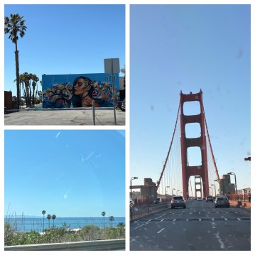 The views on the drive were wonderful (especially compared with the boring I-5 landscape). Before we even got on the highway, we spotted this gorgeous mural; and then we drove alongside the beach and palm trees for a while. Seeing the Golden Gate Bridge was a relief and comfort because that has always meant home to me.