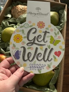 And there was a delivery of Harry & David fruit from my sisterbestie Alyssa! Oh, the joy! Truly. I may be home from the hospital, but I am staying out of public with this rash. I also have no energy and no fresh food in the house. This box of pears and apples arrived just when it was needed. A get-well fruiting!