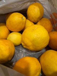 None that I’ve found since are anywhere near as good. So I decided to make them. Our wonderful neighbor Vashti gave me this big bag of lemons from their tree! Many thanks and lemon bars to come!