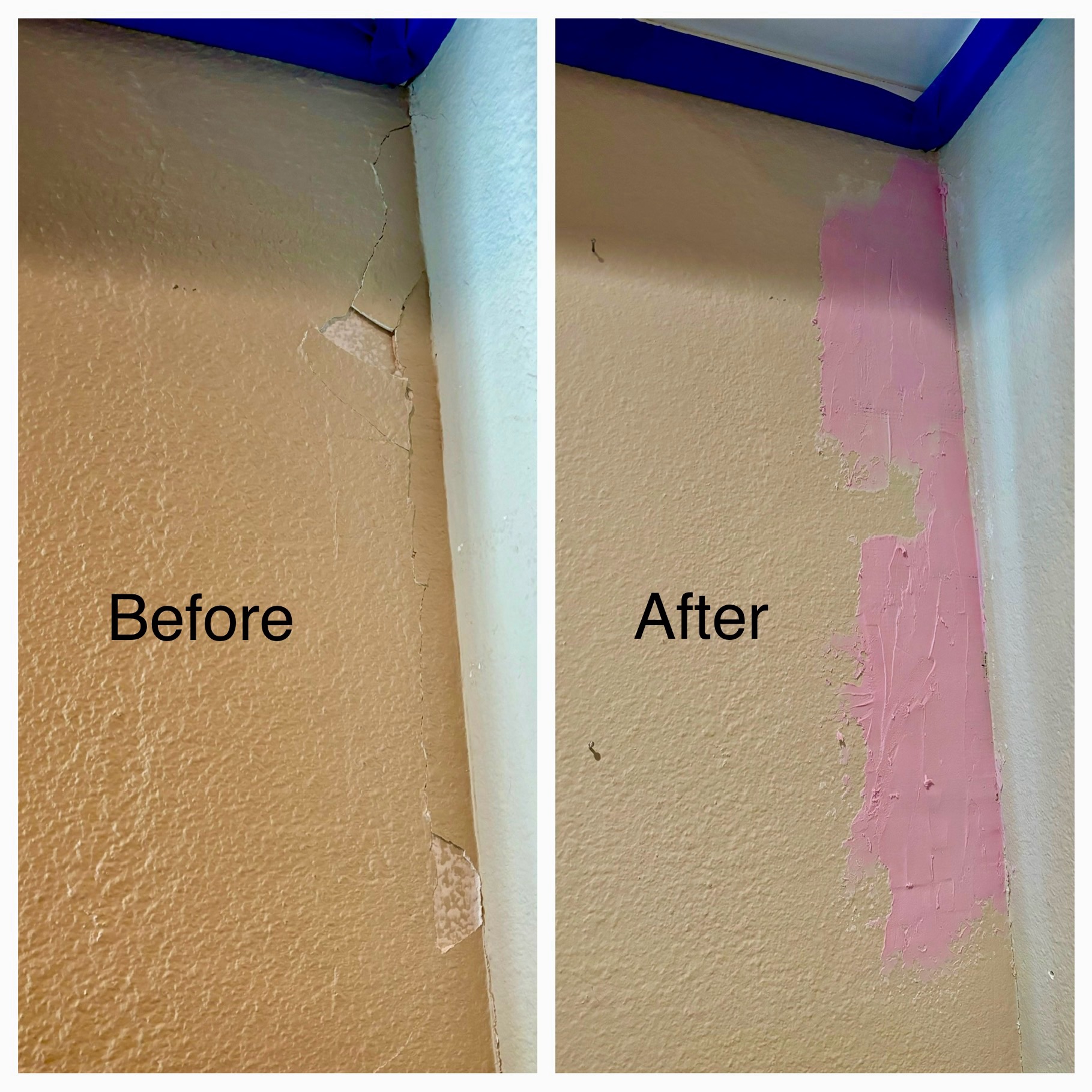 My wall has this large crack and a couple of chips in it that’s been bugging me for years. Today I finally fixed it! I felt so proud of myself. And once it dries/hardens, the wall will be ready for painting.