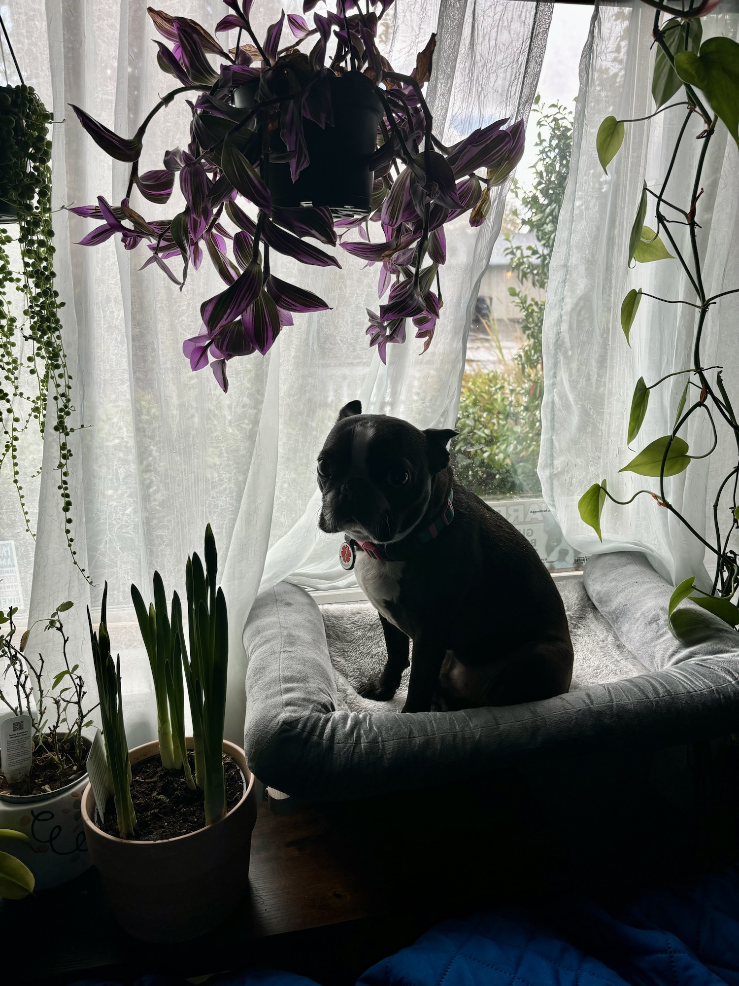 Monitoring the neighborhood from the window is one of Benny’s favorite activities–even to the detriment of my beloved plants. So I got him a windowsill cat bed and he loves it! Seeing him in the window beautifully framed amongst my plants always makes me smile.
