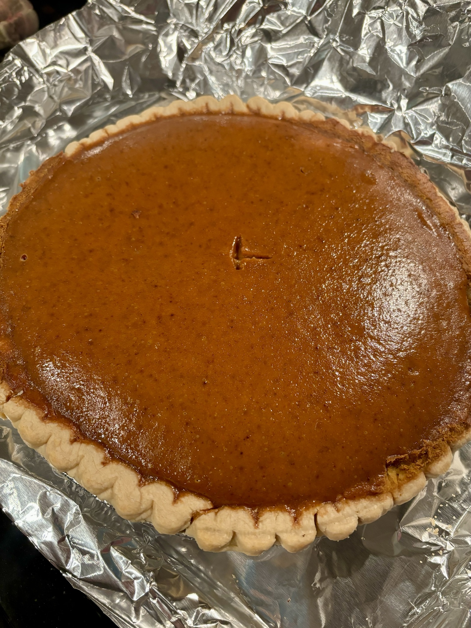 Though we could get a pie at the market along with our meal, I find store-bought pumpkin pies much too bland. I add more spice to mine. And since it is always better the next day, I made the pie early. Is it ever too early for pie? I think not!