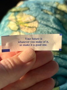 Mama and I enjoyed Chinese food today, in typical Jews on Christmas fashion. The food was delicious and I got an excellent fortune: Your future is whatever you make of it, so make it a good one.