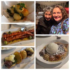As a very early birthday treat, More Diane and I went out for my favorite meal of goat cheese fritters, Tunisian carrots, steak sliders, and croissant bread pudding. It was incredible and I’m stuffed!