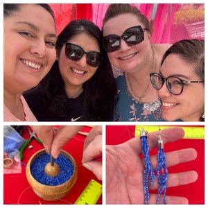Today I was honored to be part of a small dry-run of a beading workshop led by my friend Gloria. We sat outside under a beautiful canopy and listened to birds singing as we got our craft on and chatted. It was SO fun! Though I’ve been beading my whole life, I was thrilled to learn new techniques from a beading legend like Gloria.