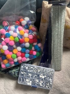 I was so excited to have everything needed on hand! I sent a package over the fence with googly eyes, pipe cleaners for whiskers, and fuzzy ball options for the nose. It honestly felt like I’d achieved some new status of crafter, like unlocking an unknown level.