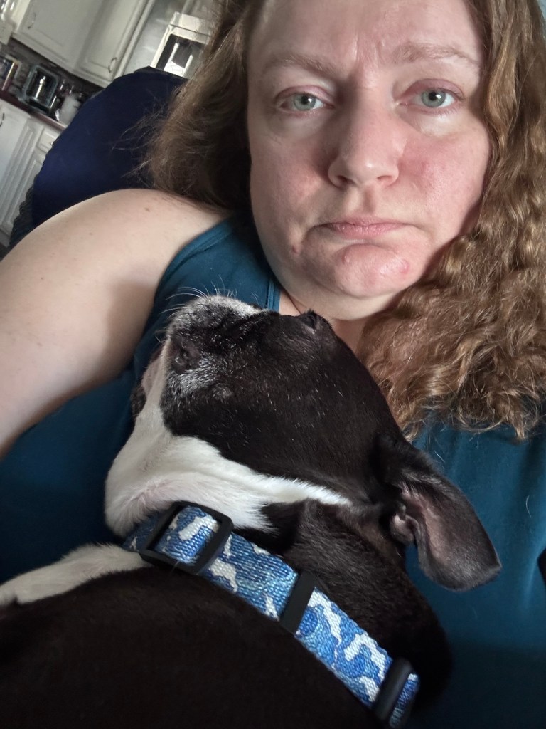 Benny’s preferred snuggle is usually against my legs, but today he rested his little head against my chest and went right to sleep. It was a magical feeling, reminding me of my beloved Abby, who used to do that all the time.